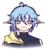 * the pointing ears and blue hair with purplish gradations is his iconic along with sharp fangs and annoying grin. As son of the king and queen of azure kingdom And the only heir since kid he always learn about everything and having knowledge. As prince haru grown with polite attitude but wouldn't be hold back to break it if needed, he had mana capacity bigger and speciality in magic. His main element is yellow Lightning can be create to a blast energy just like railgun on condition that it must be come from magic rune circle or his pointing finger (his main attacks beside hand to hand combat or using weapon that created from his lightning element). Despite could living longer than elf and devil it doesn't mean he can't be killed, he had died so many times but always comeback to live whenever the core (crystal like at his chest) didn't destroyed because it have same function with heart.